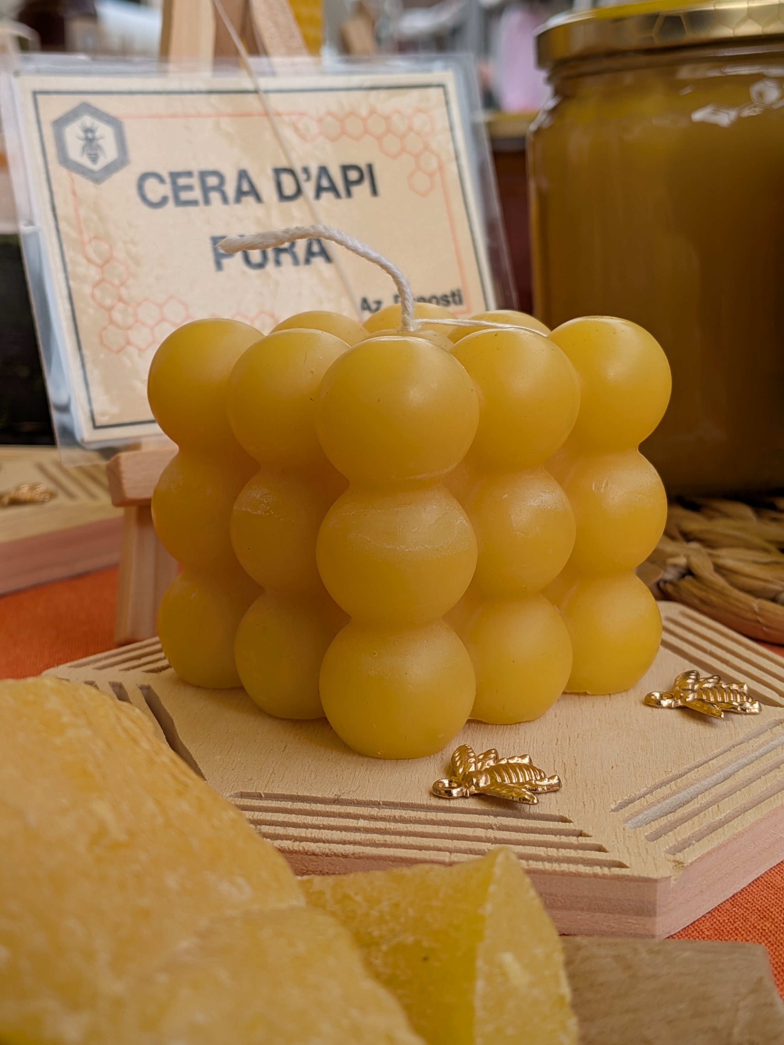 La cera d’api è una sostanza naturale preziosa, prodotta dalle api operaie della specie Apis mellifera. Viene secreta da piccole ghiandole presenti sull’addome delle api sotto forma di sottili scaglie che, una volta masticate e modellate, diventano il materiale con cui costruiscono i favi dell’alveare.